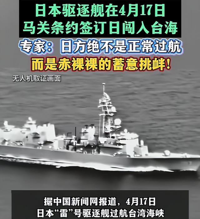 而这绝非日本近期唯一触碰历史红线、挑衅中国的举动,4月17日恰逢《马关条约》签署131周年的国耻纪念日,日本驱逐舰公然强行闯入台湾海峡海域。